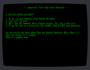 Sonneveld's first text adventure made using batch files. The story may feel familiar.